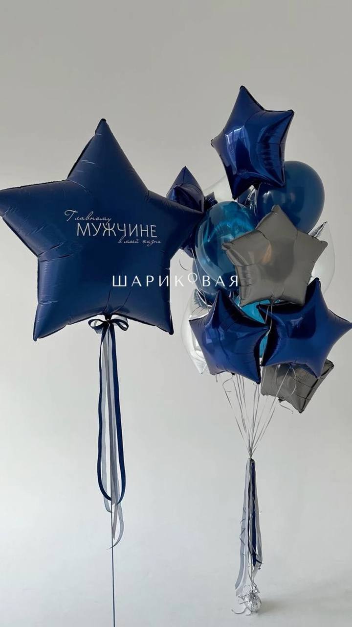 1 - Звезда 90 см + индивидуальная надпись + грузик 2 - 2 цифры 100 см + грузики 3 - 15 шаров под потолок на дождике (10 хром, 5 фольгированных звёзд 45 см)