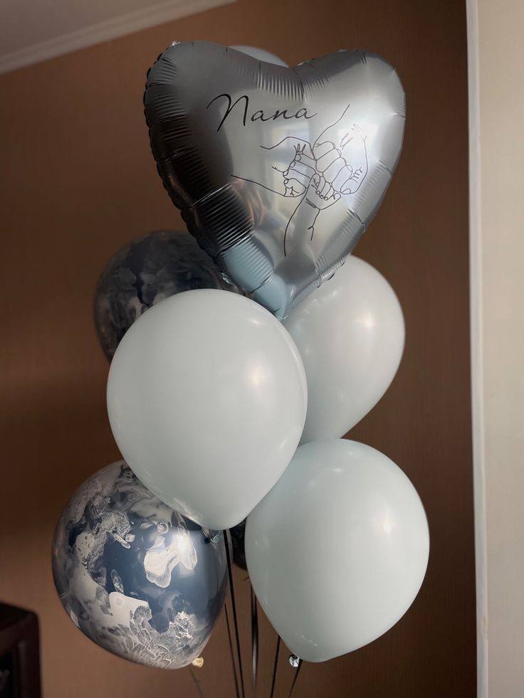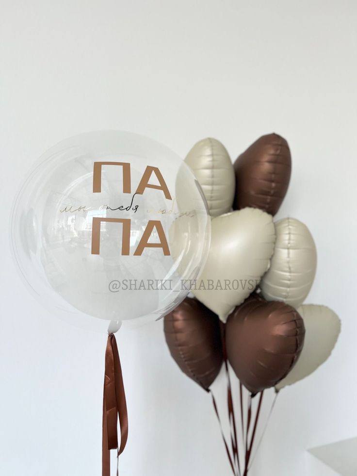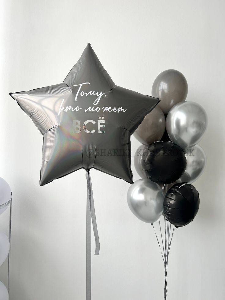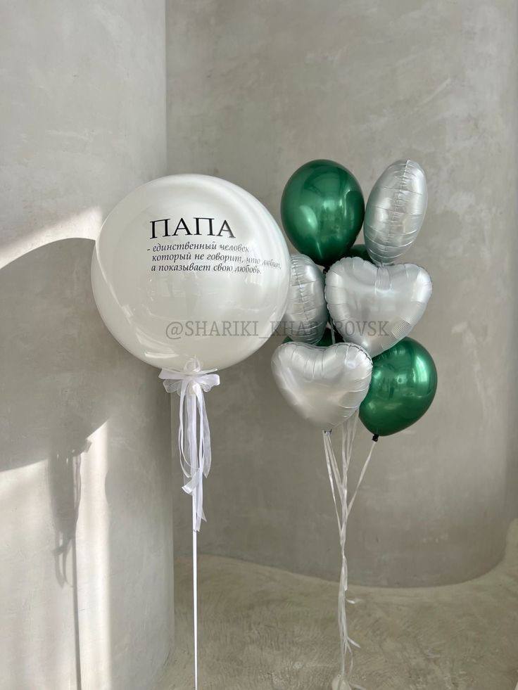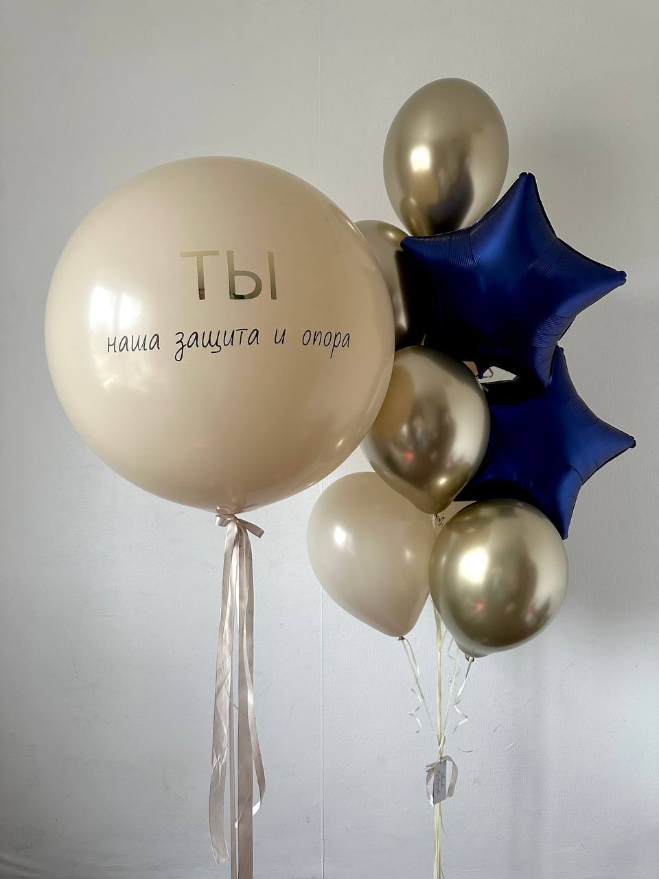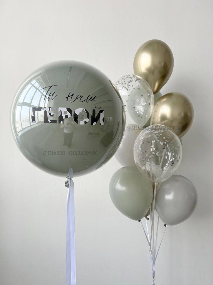 1 - Фонтан из 10 шаров (7 пастель, 3 хром) + грузик 2 - Стеклянный шар 60 см + прослойка из конфетти + индивидуальная надпись + тассел + грузик 3- кубок с надписью + грузик