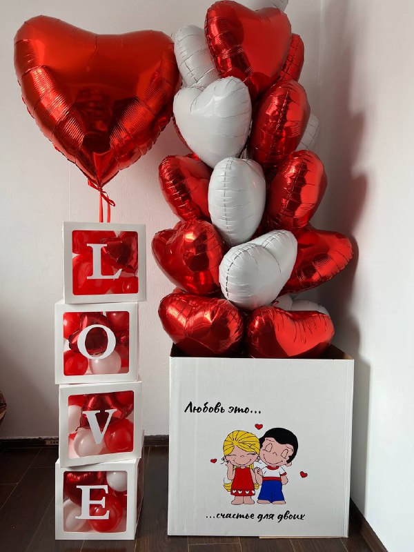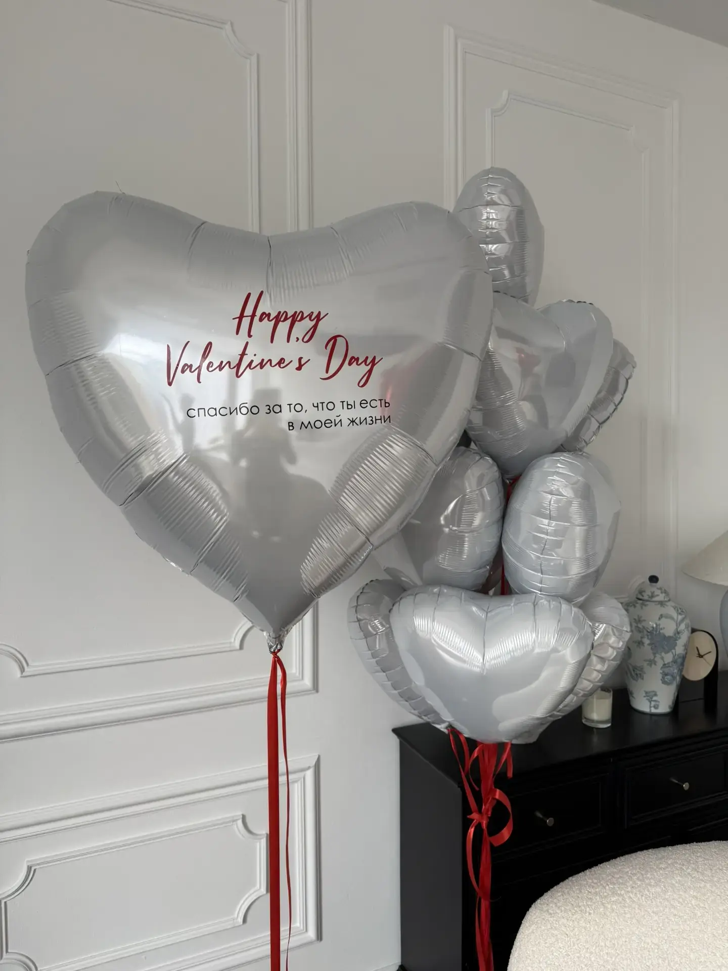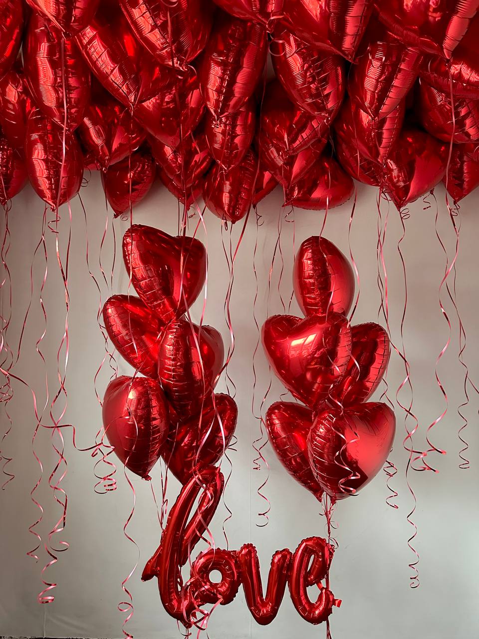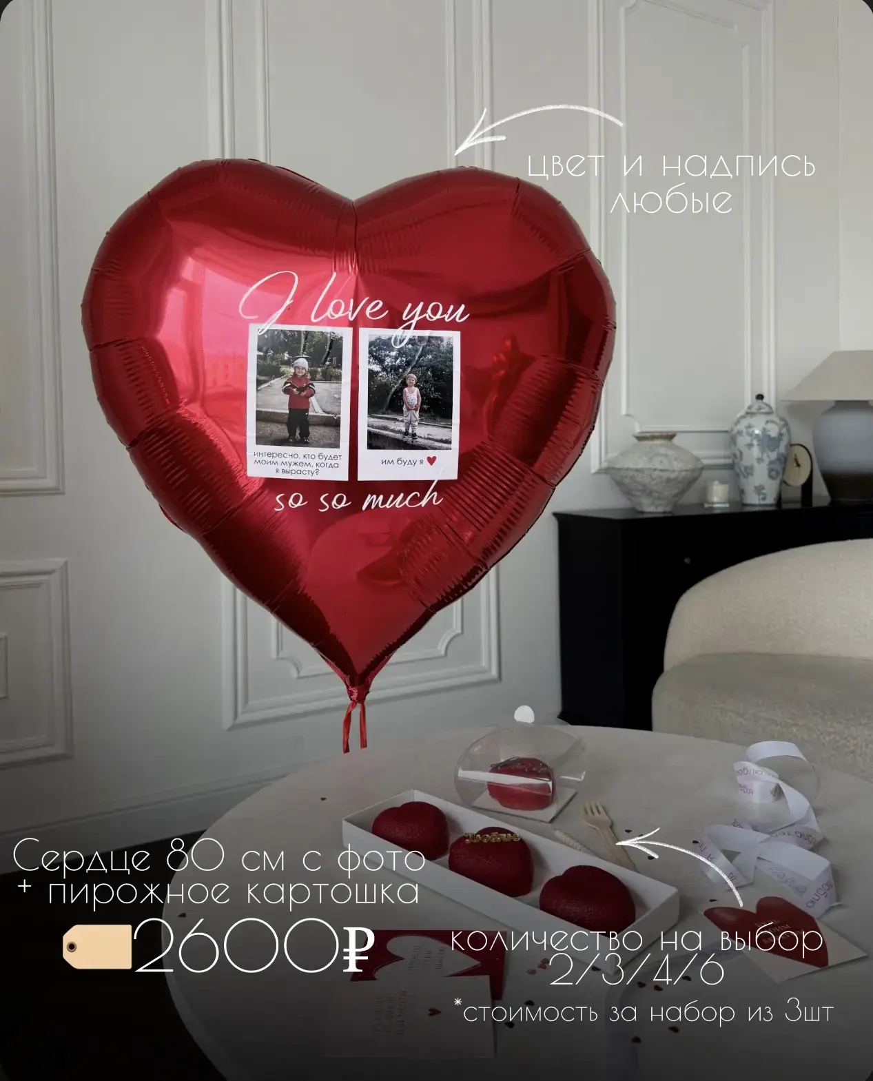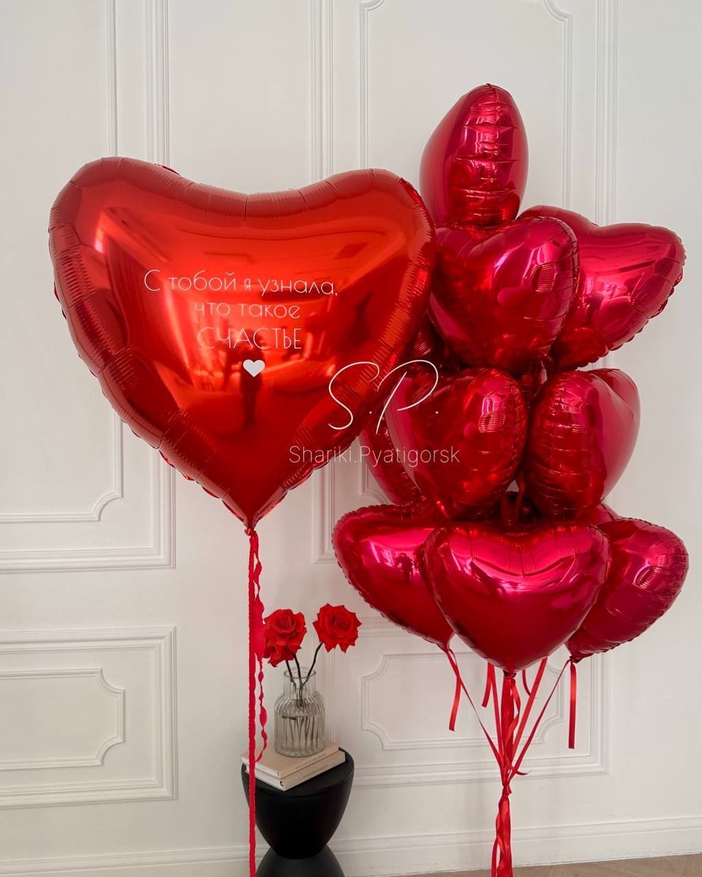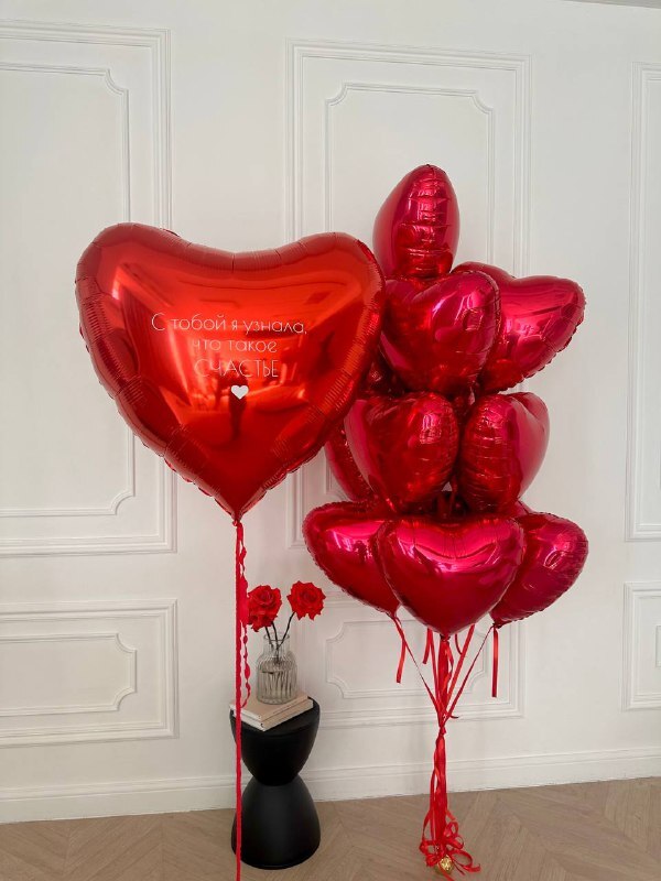 1- 2 фонтана по 10 сердец 45 см + грузики 2 - Сердце 50 см + индивидуальная надпись + грузик 3 - Сердце 90 см + индивидуальная надпись + фото + грузик 4 - 10 сердец 45 см под потолок