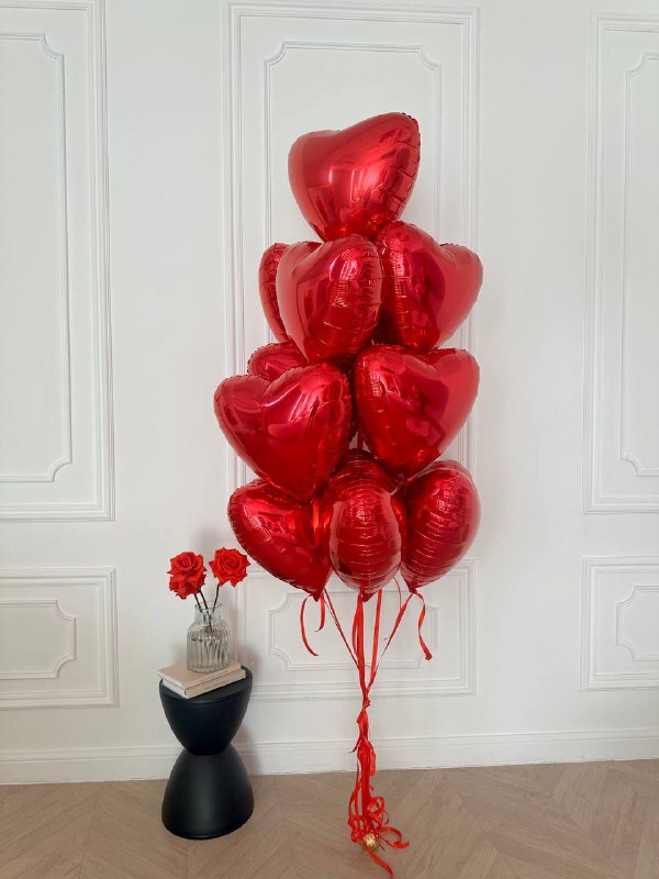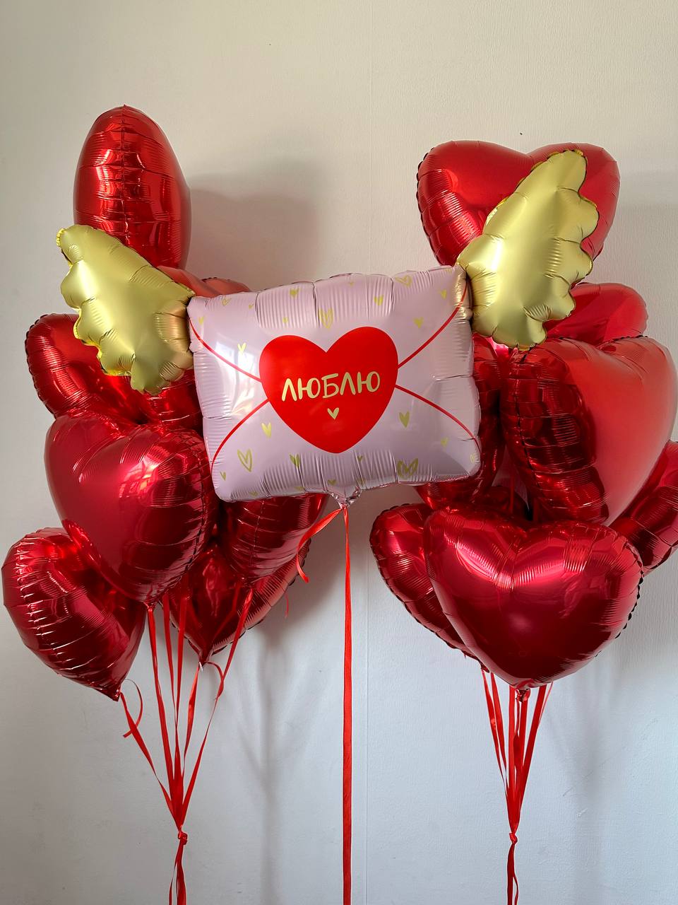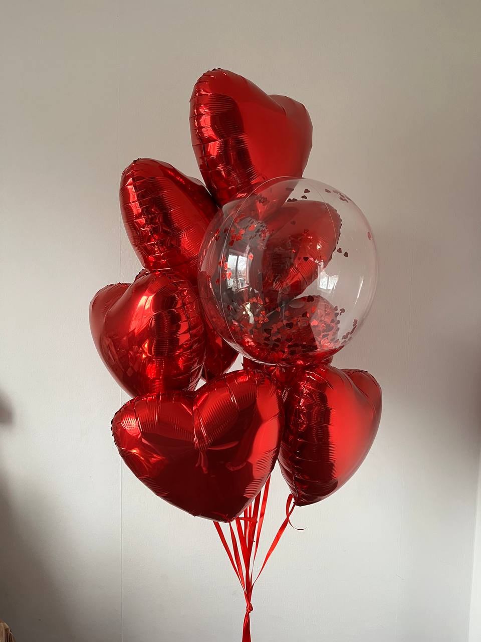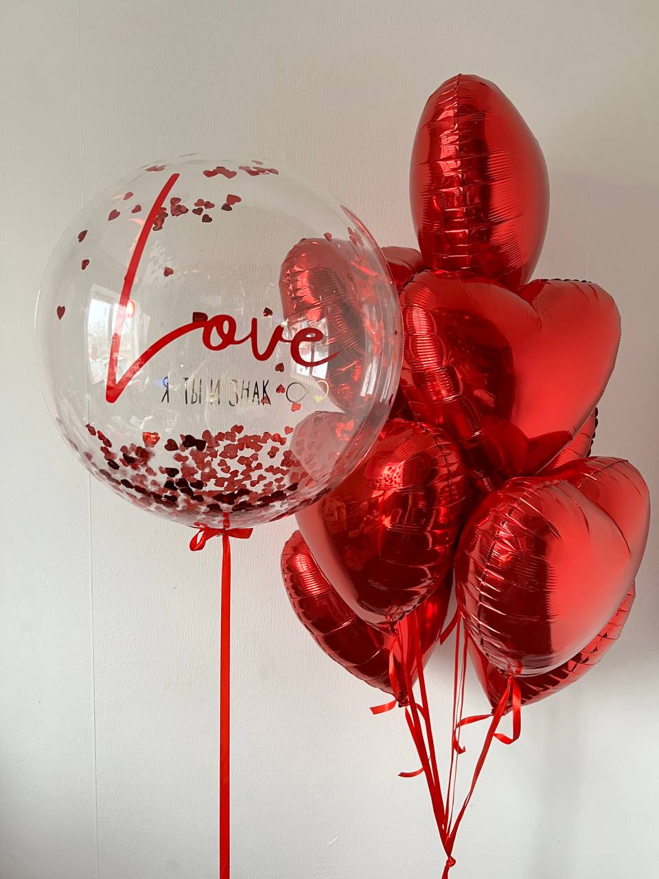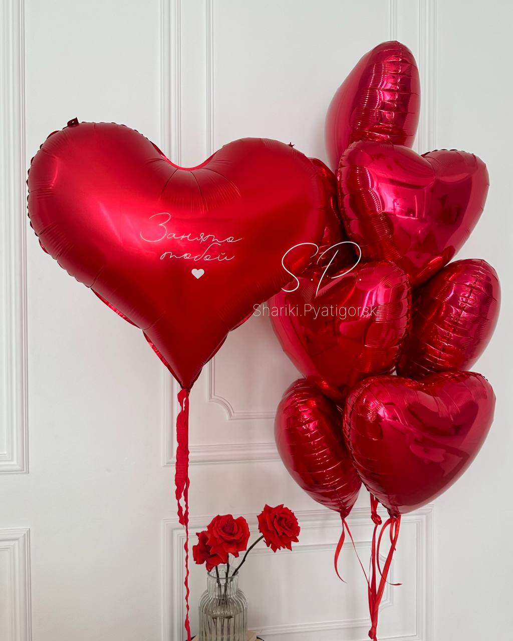 1- 2 фонтана по 10 сердец 45 см + грузики 2 - Сердце 50 см + индивидуальная надпись + грузик 3 - Сердце 90 см + индивидуальная надпись + фото + грузик 4 - 10 сердец 45 см под потолок